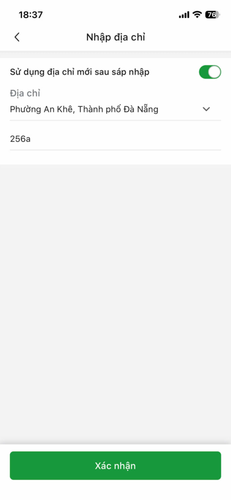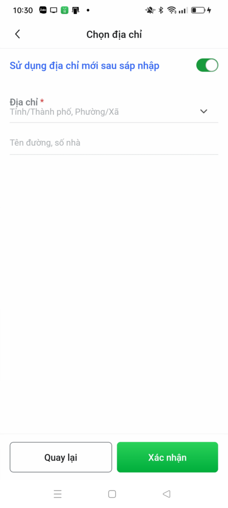 - Bước 2: Kiểm tra phần địa chỉ, chọn “Sử dụng địa chỉ mới sau sáp nhập” để hiển thị đúng với địa giới mới.