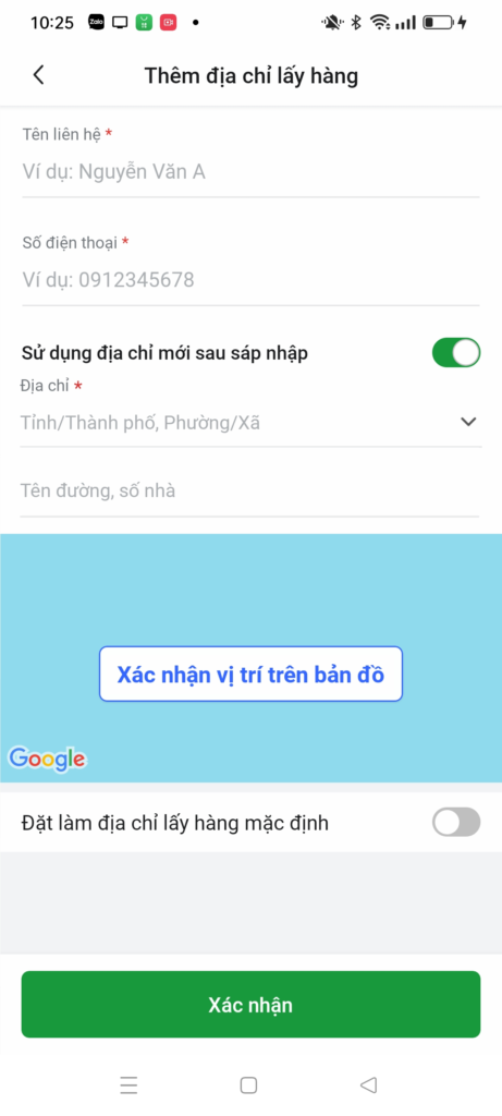 - Bước 2: Người dùng chỉ cần cập nhật thêm phần “Địa chỉ cụ thể” (ví dụ: số nhà, hẻm, khu vực…) để đảm bảo khớp với vị trí thực tế.