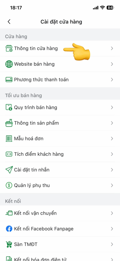 - Bước 2: Truy cập mục “Thông tin cửa hàng” trong hệ thống.