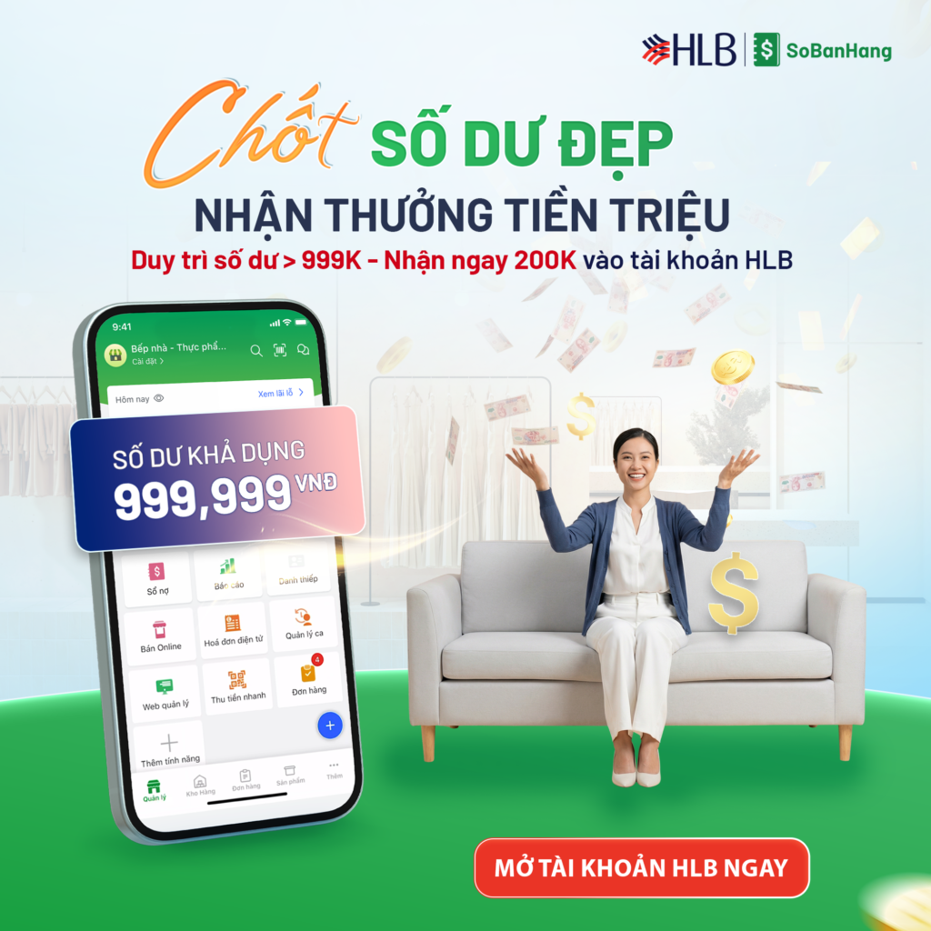 Đối với các chủ kinh doanh, việc quản lý dòng tiền và duy trì số dư tài khoản ổn định không chỉ giúp hoạt động kinh doanh vận hành trơn tru mà còn mở ra nhiều cơ hội nhận thêm lợi ích tài chính. Nhằm khuyến khích người dùng duy trì tài khoản thanh toán hiệu quả, Sổ Bán Hàng phối hợp cùng Hong Leong Bank triển khai chương trình ưu đãi hấp dẫn “Chốt Số Dư Đẹp – Nhận Thưởng Tiền Triệu”.