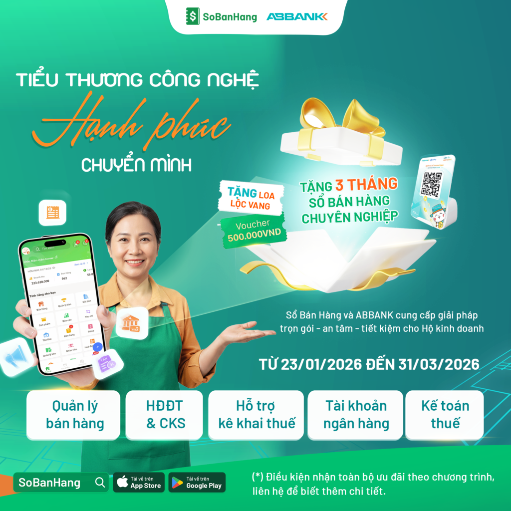 Chương trình ưu đãi từ Sổ Bán Hàng và ABBANK: TIỂU THƯƠNG CÔNG NGHỆ – HẠNH PHÚC CHUYỂN MÌNH
