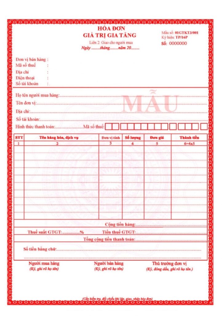 - Hóa đơn giá trị gia tăng (Hóa đơn VAT):