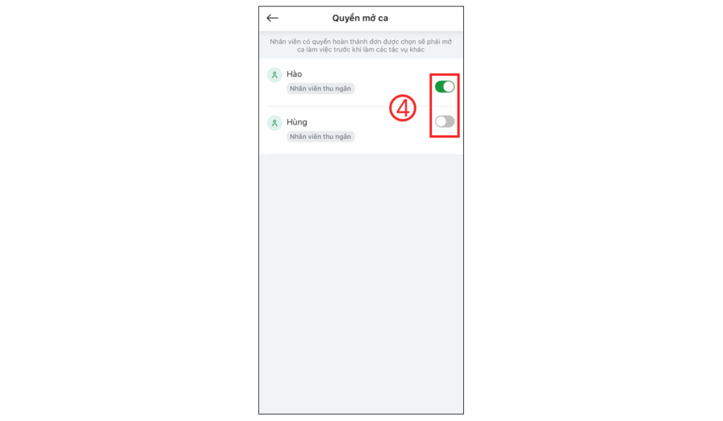 Bước 2: Chọn bật cho nhân viên bạn đã thêm vai trò (4)