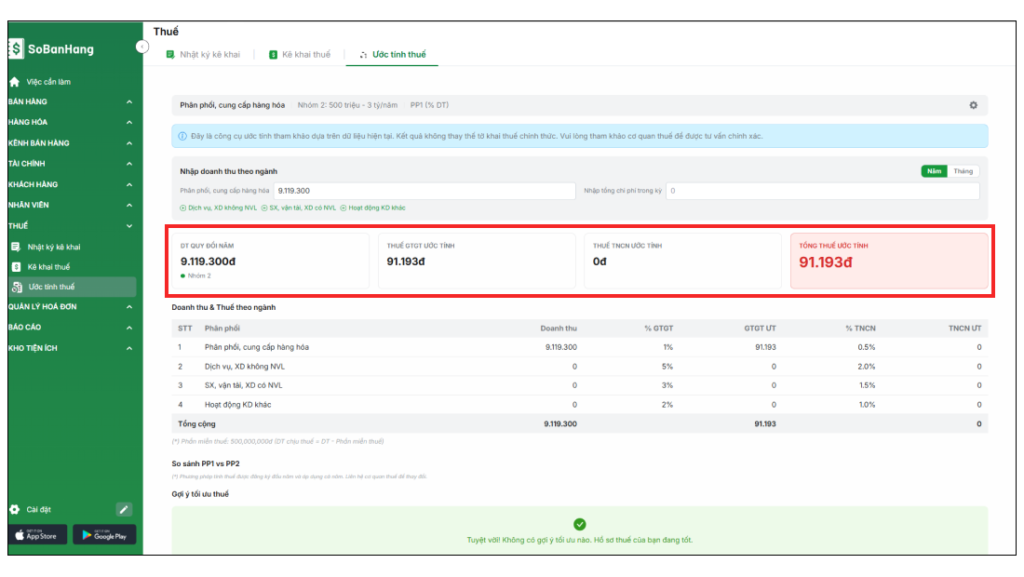 Bạn có thể dùng công cụ ước tính thuế của Sổ Bán Hàng để có thể nhanh chóng ước tính và kiểm tra, sau đó lưu kết quả để phục vụ cho việc nộp thuế.