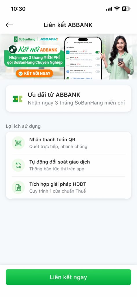 - Hỗ trợ liên kết tài khoản ngân hàng ABBANK, Agribank & HDBank trực tiếp trên Sổ Bán Hàng với nhiều ưu đãi hấp dẫn cho các chủ kinh doanh.