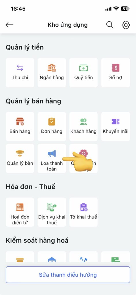 Bước 1: Chủ kinh doanh vào “Kho ứng dụng” – Chọn “Loa thanh toán“