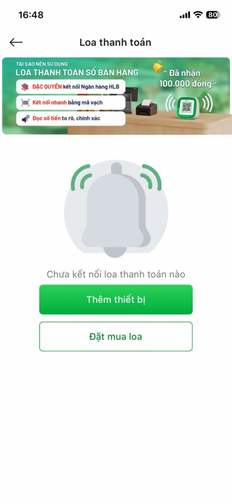 Kết nối Loa Thanh toán – Thông báo tiền về tức thì