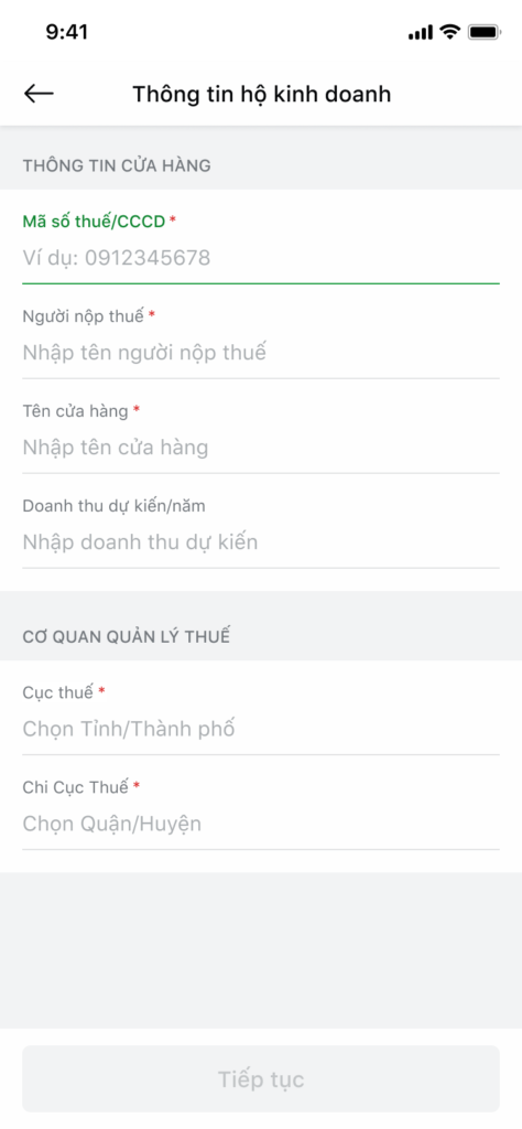 Bước 3: Điền đầy đủ thông tin vào tờ khai => Nhấn “Tiếp tục”