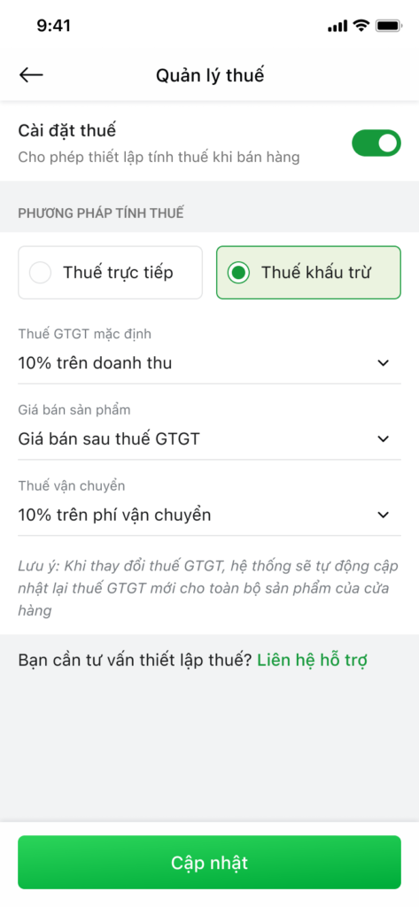 Bước 2: Tùy chỉnh phương pháp tính thuế phù hợp với mô hình kinh doanh