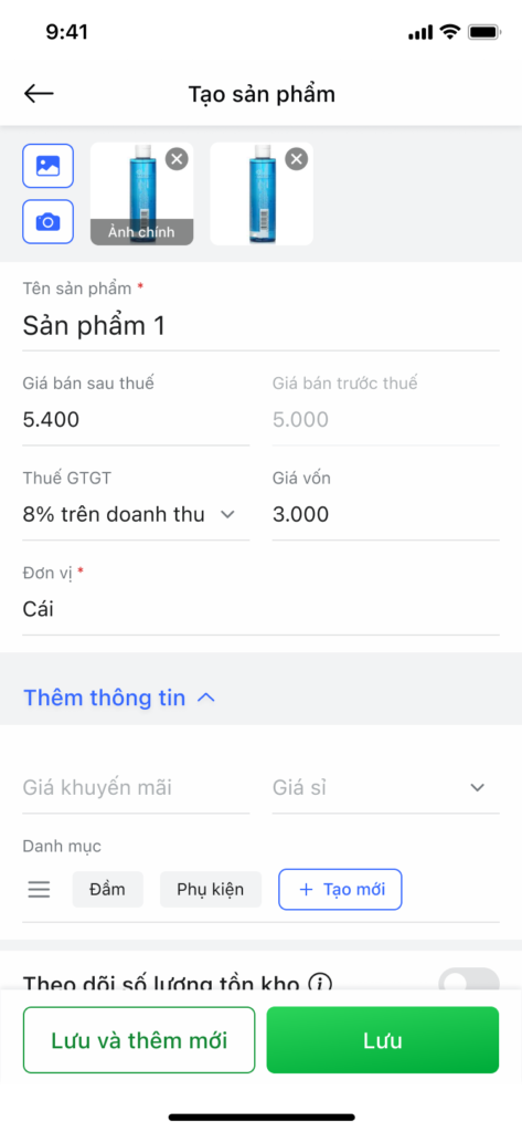 Bước 3: Vào mục “Sản phẩm”, điều chỉnh giá bán sau thuế