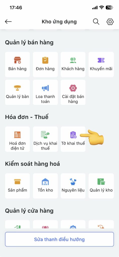 Bước 1: Chủ kinh doanh mục “Kho ứng dụng” – Chọn “Tờ khai Thuế”