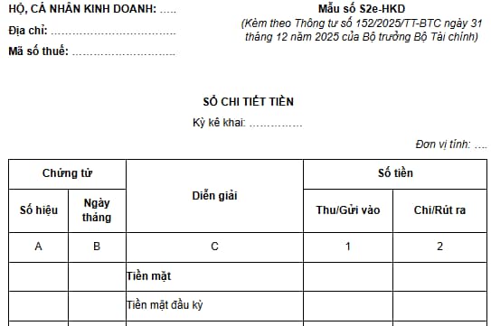 Sổ chi tiết tiền (Mẫu S2e-HKD)