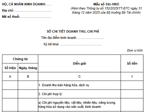 Sổ chi tiết doanh thu, chi phí (Mẫu S2c-HKD)