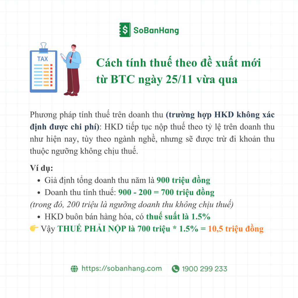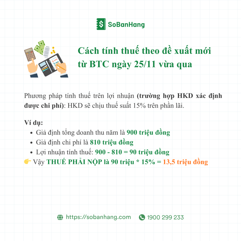 Ví dụ: Hộ kinh doanh lợi nhuận chỉ 10-15% nhưng trước đây vẫn phải nộp thuế trên toàn bộ doanh thu. Phương pháp mới giúp giảm thuế đáng kể.