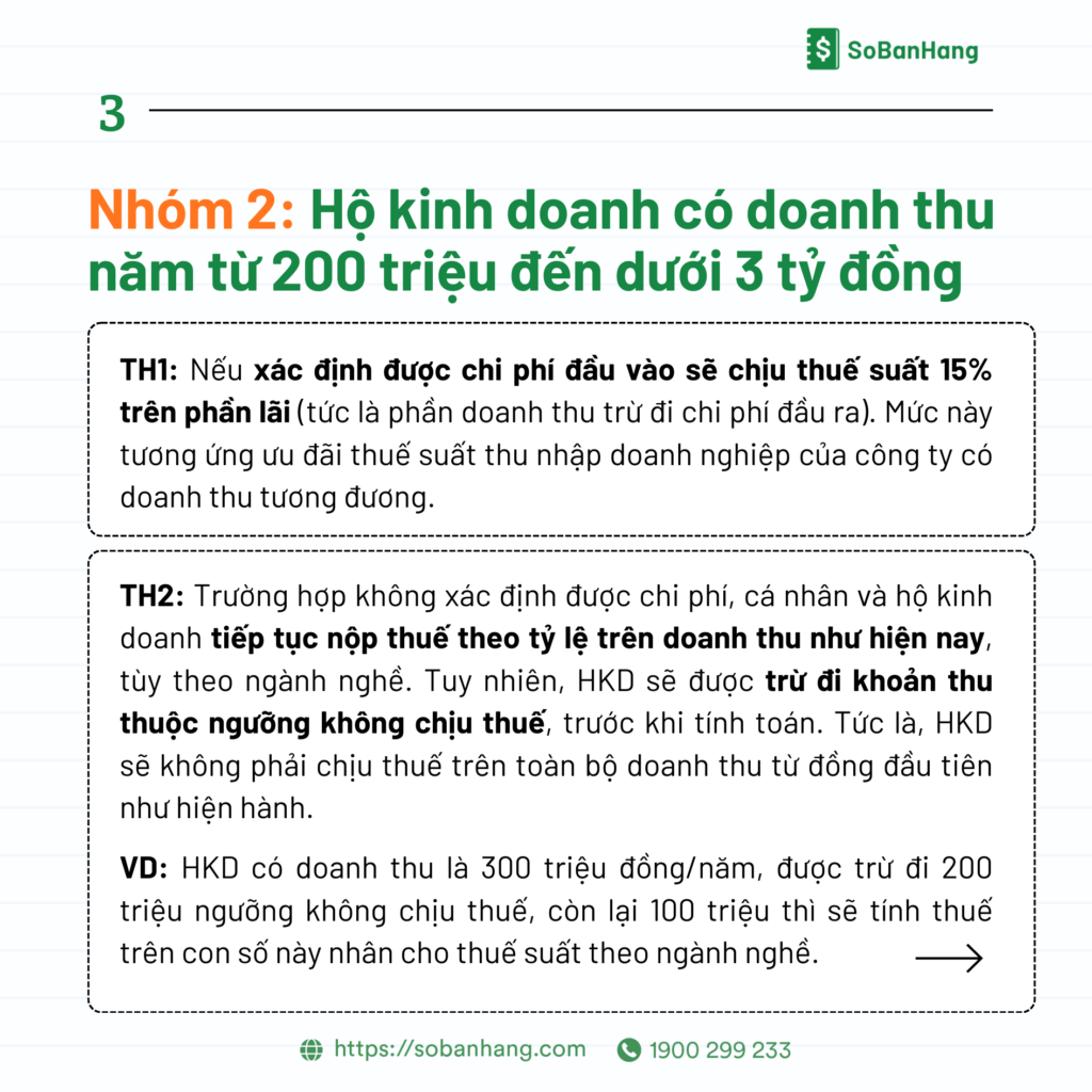 - Hộ kinh doanh doanh thu từ ngưỡng chịu thuế đến dưới 3 tỷ đồng/năm
