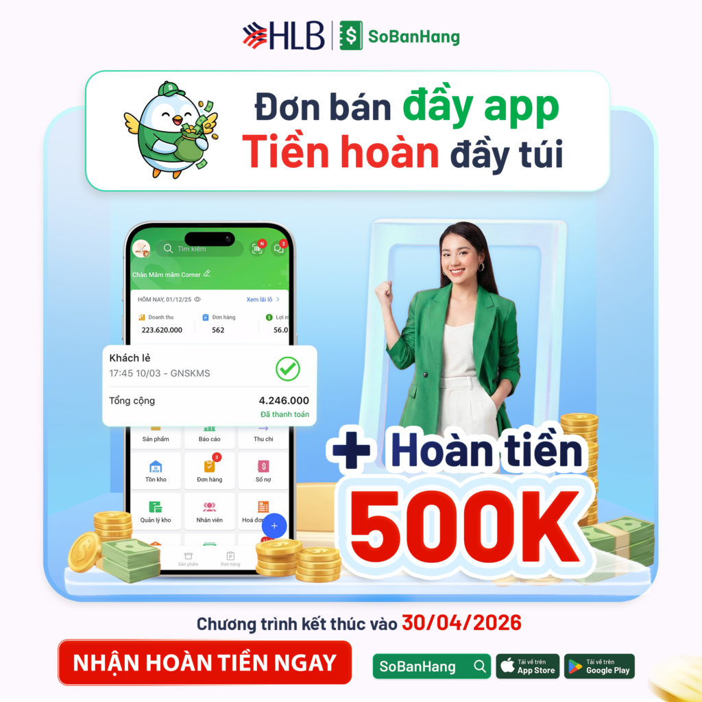 Đối với các chủ kinh doanh, việc quản lý dòng tiền và duy trì số dư tài khoản ổn định không chỉ giúp hoạt động kinh doanh vận hành trơn tru mà còn mở ra nhiều cơ hội nhận thêm lợi ích tài chính. Nhằm khuyến khích người dùng duy trì tài khoản thanh toán hiệu quả, Sổ Bán Hàng phối hợp cùng Hong Leong Bank triển khai chương trình ưu đãi hấp dẫn “Chốt Số Dư Đẹp – Nhận Thưởng Tiền Triệu”.